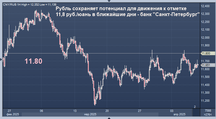 Рубль сохраняет потенциал для движения к отметке 11,8 руб./юань в ближайшие дни - банк "Санкт-Петербург" Курс доллара к рублю расчётный, фьючерс, вечный фьючерс и межбанк. Курс евро к рублю расчётный, фьючерс, вечный фьючерс и межбанк. Курс юаня к рублю биржевой, фьючерс, вечный фьючерс и межбанк. Рубль сохраняет потенциал для движения к отметке 11,8 руб./юань на фоне складывающихся на глобальном рынке условий, говорится в обзоре банка "Санкт-Петербург". "Во вторник рубль укрепился, по данным ЦБ РФ, но несколько ослабился под конец дня на Мосбирже, - констатируют аналитики. - Судя по данным, ЦБ за понедельник-вторник еще не осуществил весь объем "пропущенных" в пятницу продаж валюты. Сравнительно более высокое предложение юаней временно играет на стороне рубля. В среду утром курс CNY\RUB находится у 11,67 руб./юань. Другие курсы валют EM с утра двигаются разнонаправленно. В целом на фоне складывающихся на глобальном рынке условий у курса остается потенциал к росту в сторону 11,80 руб./