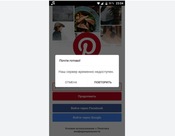 Мне, например, Pinterest не открывался ни через приложение, ни через браузер — полная тишина. Поэтому просто ждать было бесполезно.