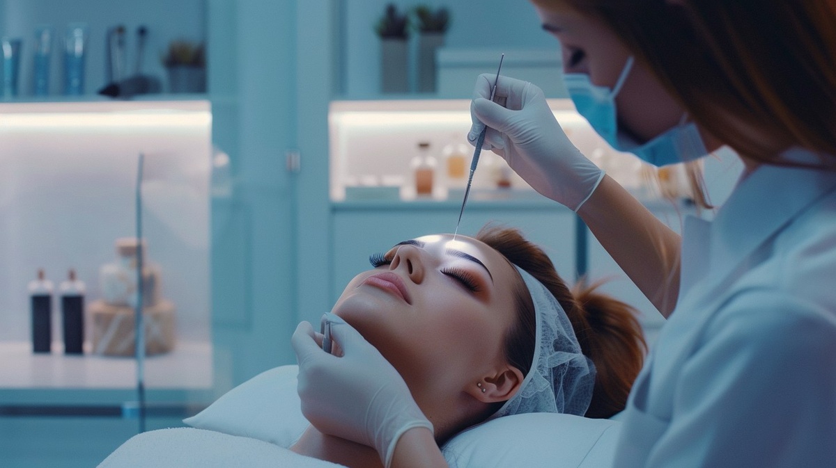 Создано на основе запроса: A high-resolution realistic photo of a professional beauty salon during an eyelash extension procedure, a
