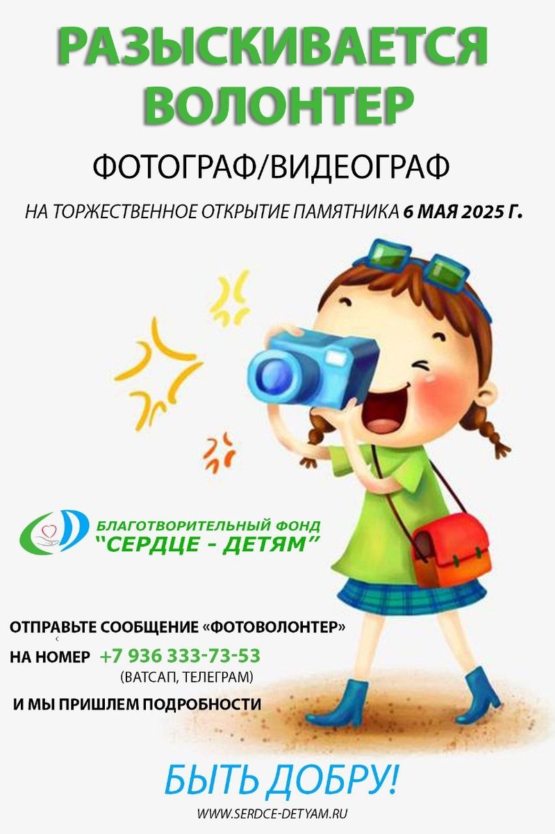 Друзья, мы ищем фотографа и/или видеографа на открытие памятника в честь подвига железнодорожников в годы Великой Отечественной войны. 🚩 Локация: сквер около жд станции Панки 🗓️ Дата: 6 мая 2025 ⏰ Начало в 12.00 Официальная часть длится 1 час. ✨ С нас Благодарственное письмо и упоминание вас на всех наших ресурсах (сайт, телеграм, вк). #ищем #сердцедетям #волонтеры