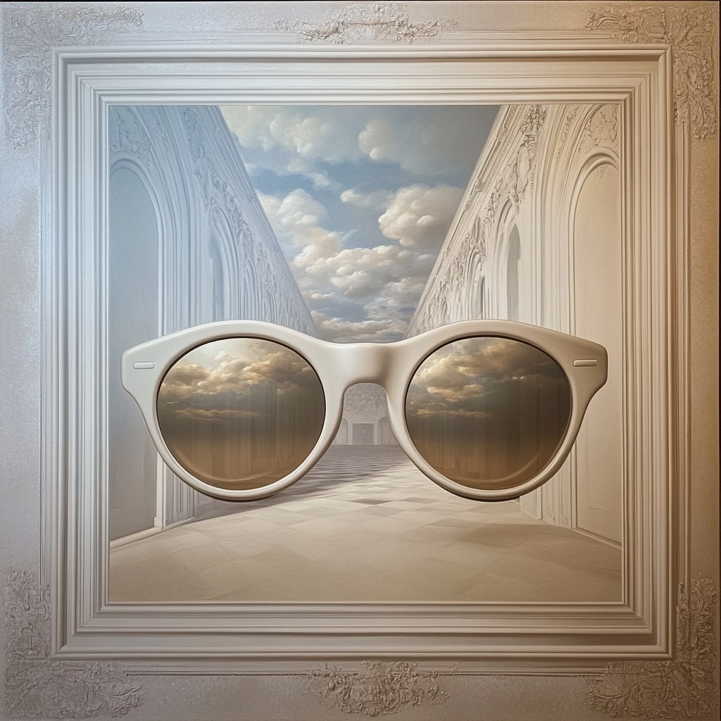 Создано на основе запроса: une photo ultra réaliste. Une paire de lunette dans un tableau exposé dans un musée --- Автоперевод: Une Photo Ultra Réaliste. Круто получилось? 🤔 https://dzen.ru/id/65c0c65c86e4f837c27b24d7 #ИИ #AI #нейросеть #midjourney #art