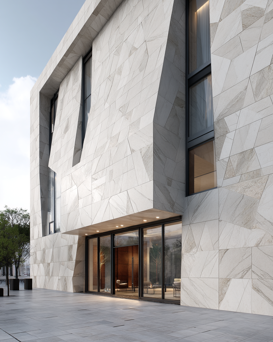 Один из главных трендов в отделке фасадов — использование керамогранита, имитирующего природные материалы. Природные камни, такие как мрамор, гранит, сланец и известняк, всегда были востребованы в строительстве, но их высокая стоимость и сложность обработки вынудили архитекторов искать альтернативы. Керамогранит способен идеально имитировать эти материалы, предоставляя заказчику не только визуальный эффект, но и повышенную износостойкость и долговечность.