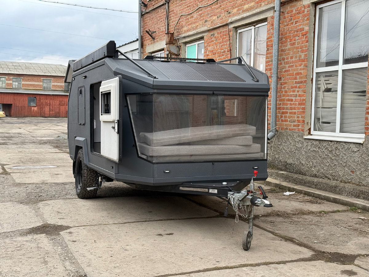 Автор проекта Николай Галанский вдохновился австралийскими внедорожными прицепами и решил построить что-то похожее в свободное от работы время. Получился интересный продукт, с которым мы спешим вас познакомить. Это уже второй экземпляр прицепа, который получил название от фамилии автора - "Галандец". Внешние размеры Внутренние размеры Внутри могут расположиться одновременно 2-4 человека. В плохую погоду, когда снаружи под маркизой сидеть неприятно, можно залезть внутрь, полежать, согреться, включив отопление. Есть встроенный проектор, аудиосистема и экран, закрывающий большое панорамное окно. Люк в потолке с вентилятором, окна в боковых дверях дают хороший приток воздуха. Два вентилятора в потолке будут освежать пространство. Можно просто любоваться красивым видом через большое окно. Главное, удачно встать. Для хранения вещей много полок и даже предусмотрен небольшой гардероб, куда можно повесить одежду на вешалки. Прицеп имеет обогреваемый двойной пол, где можно хранить вещи. Одна п