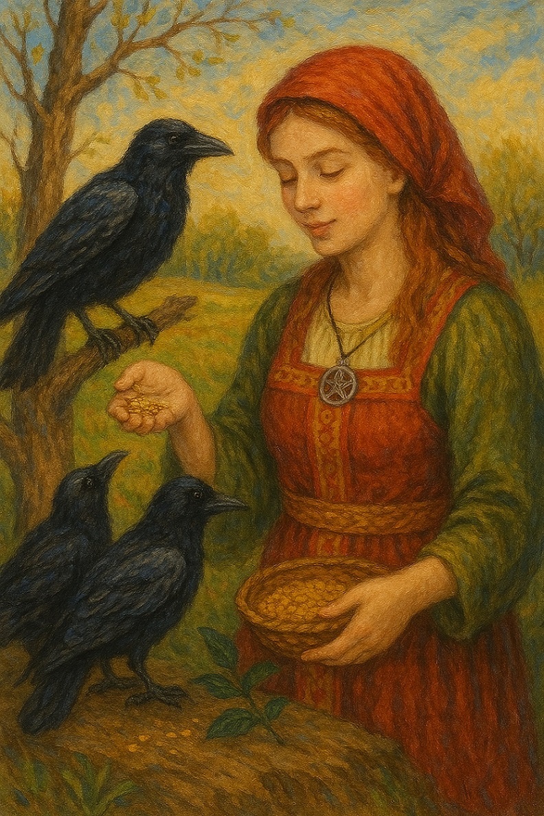 "Ворон-батюшка, лети по свету, принеси весть от предков, укажи путь правды."