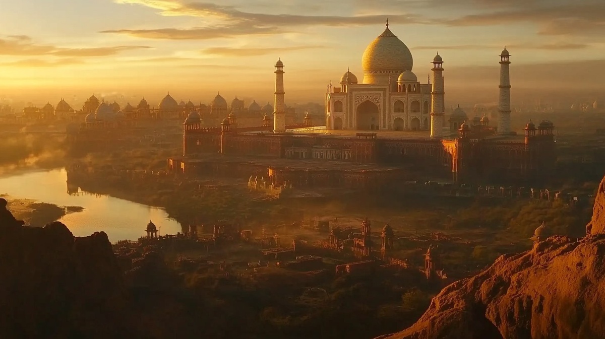 Создано на основе запроса: Generate a background of tajmahal in a distant view, semi realsitic, ultra hd
