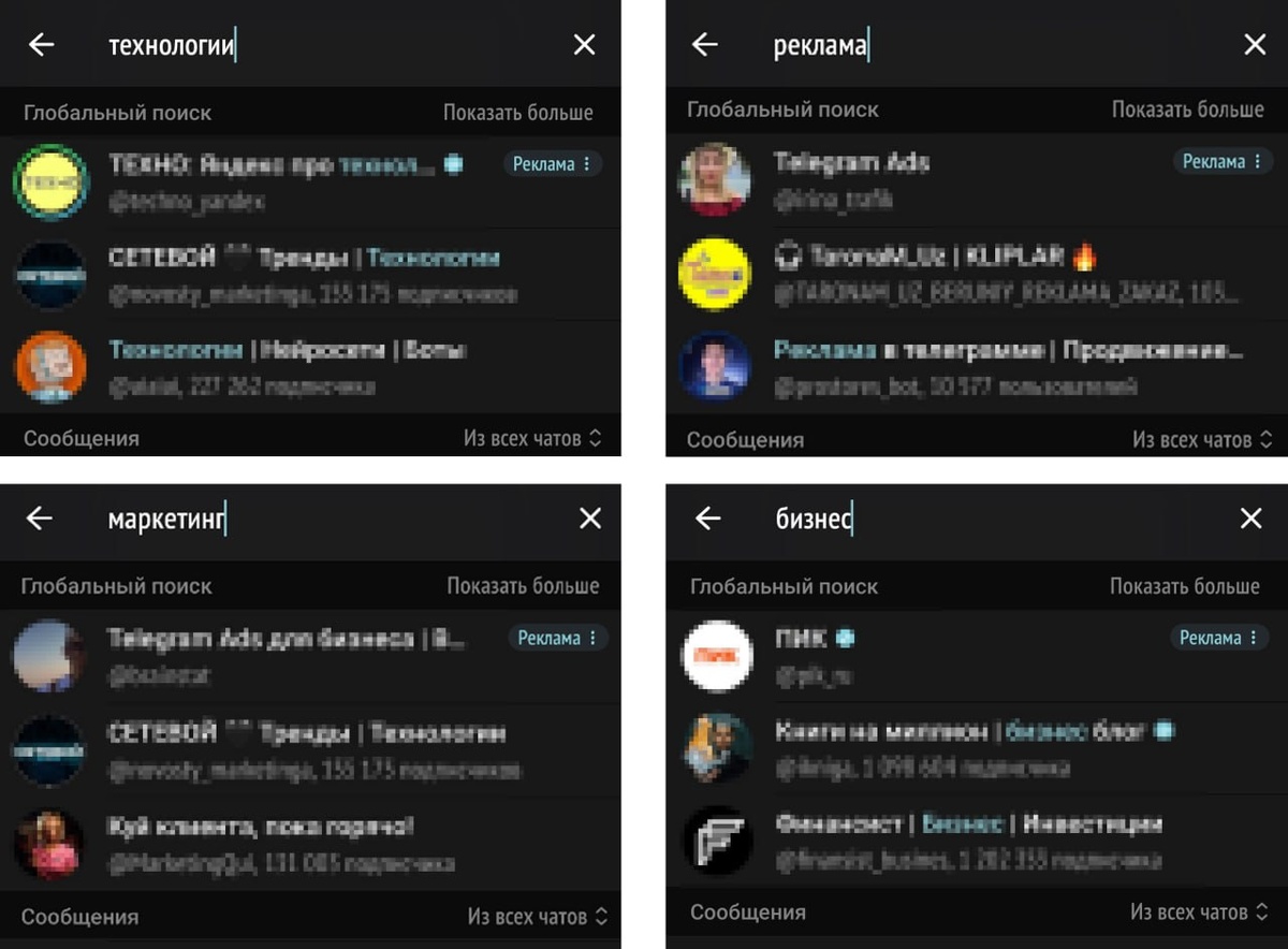 В Telegram добавили рекламные объявления в поисковой строке