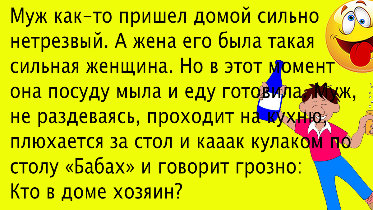 Смешной анекдот – история про нетрезвого хозяина в доме и сильную жену