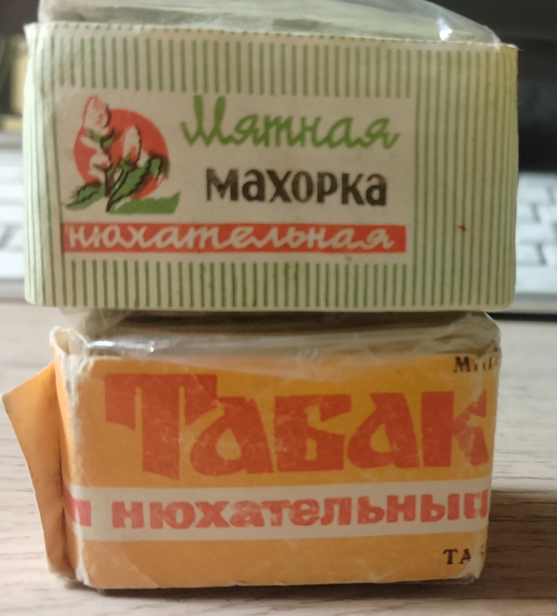 На одном популярном российском аукционе приобрёл себе в коллекцию нюхательный табак времён СССР. Производство: Моршанская табачная фабрика. Махорка нюхательная и нюхательный табак (которые на картинке сверху) вырабатывалась по ВСТУ 54—84—60, и представляли собой махорку/табак измельчённые до пылеобразного состояния. Состав был простой: Нюхательная махорка выпускалась двух сортов: высшего качества и обыкновенная. Помол очень мелкий. Мятная махорка уже выдохлась и остался только запах самой махорки. В коллекции так же есть нюхательная махорка - "Золотая рыбка", производство та же Моршанская табачная фабрика. Помол мелкий. Считается высшего качества! Крепость выше среднего. Немного страшно было нюхать столь древний табак. Весит пачка 50гр. Внутри пергамент и фольга. Помол очень мелкий, вдыхать не комфортно. На мой взгляд очень крепкая)) Из интересных фактов: В быту использовали как средство от моли. Просто раскладывали в шкафах упаковки махорки и моли не было. В саду-огороде махорка п