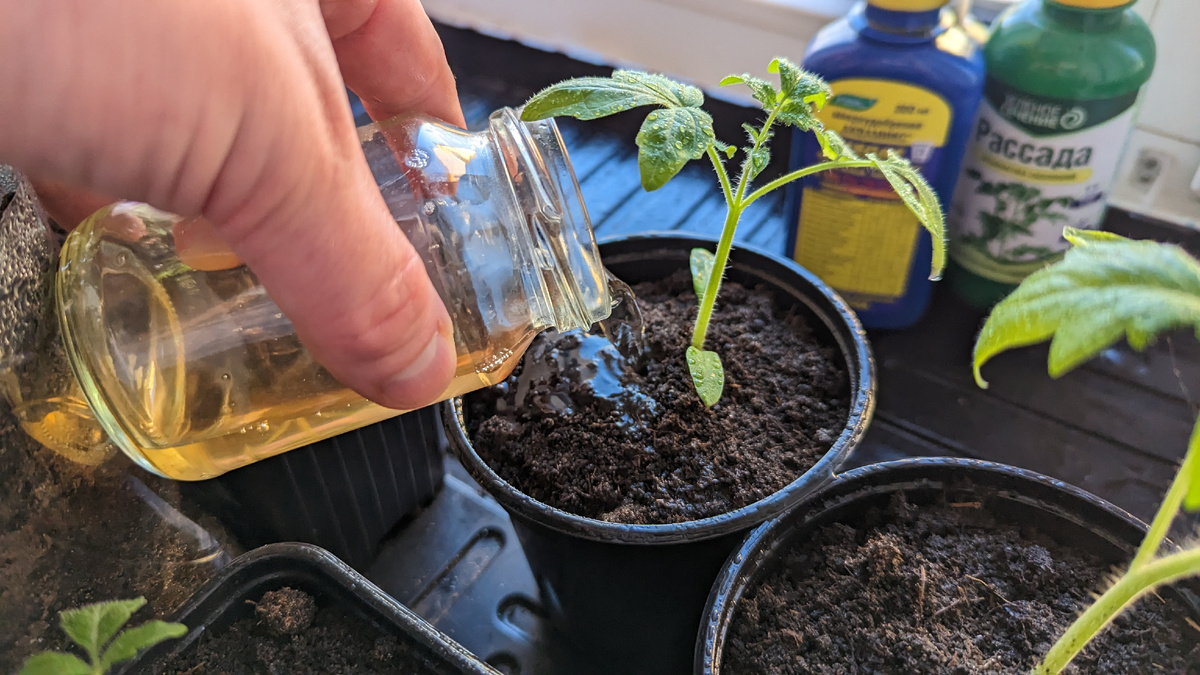 Подкормка рассады помидор и перца в апреле и мае. Растения укрепляются на глазах.
