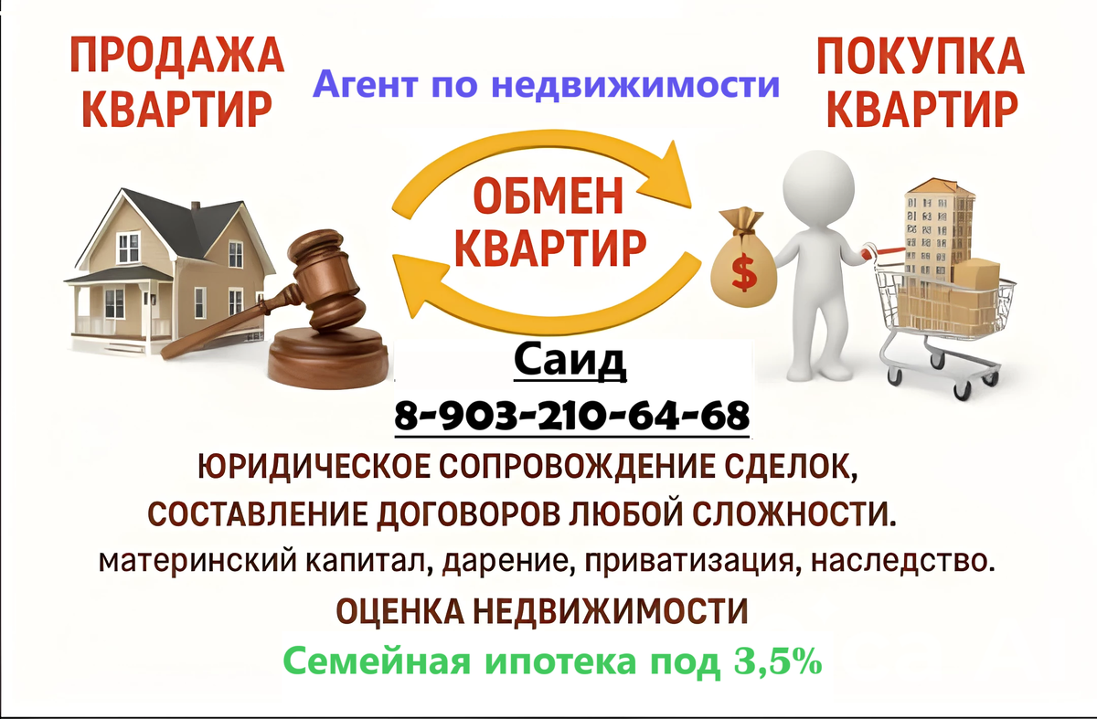 Агент по недвижимости. Звоните пишите помогу по всем вопросам. Помогу взять ипотеку по выгодным условиям. 8-903-210-94-96