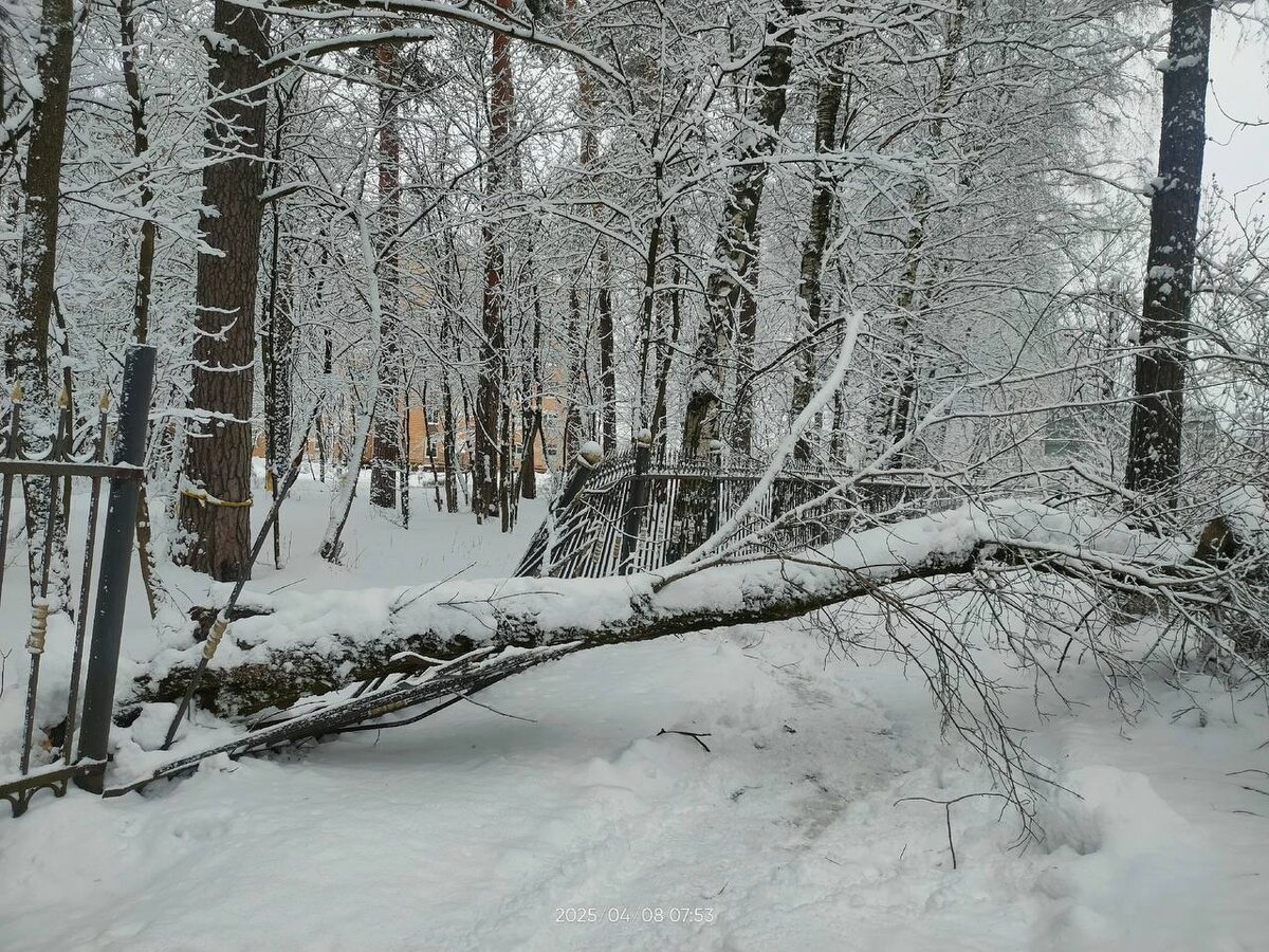 Результаты снегопада. Тротуар у ЦРБ города Ногинска напротив городского парка. Приходится проползать.
