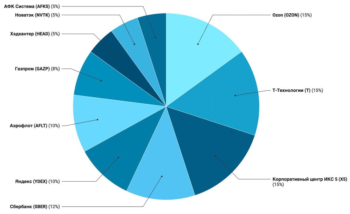 Лучшие акции российского рынка по мнению аналитиков компании по состоянию на 9 апреля. Указаны целевые цены на горизонте года и доли в модельном портфеле 1️⃣ Ozon (OZON) ■ Целевая цена: 5 000 руб ■ Вес в портфеле: 15% 2️⃣ Т-Технологии (T) ■ Целевая цена: 4 157 руб ■ Вес в портфеле: 15% 3️⃣ КЦ ИКС 5 (X5) ■ Целевая цена: 4 000 руб ■ Вес в портфеле: 15% 4️⃣ Сбербанк (SBER) ■ Целевая цена: 367 руб ■ Вес в портфеле: 12% 5️⃣ Яндекс (YDEX) ■ Целевая цена: 5 100 руб ■ Вес в портфеле: 10% 6️⃣ Аэрофлот (AFLT) ■ Целевая цена: 80 руб ■ Вес в портфеле: 10% 7️⃣ Газпром (GAZP) ■ Целевая цена: 200 руб ■ Вес в портфеле: 8% 8️⃣ Хэдхантер (HEAD) ■ Целевая цена: 6 000 руб ■ Вес в портфеле: 5% 9️⃣ Новатэк (NVTK) ■ Целевая цена: 1 400 руб ■ Вес в портфеле: 5% 🔟 АФК Система (AFKS) ■ Целевая цена: 21 руб ■ Вес в портфеле: 5% Не является ИИР
