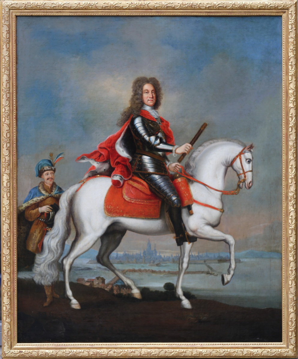 На портрете изображен император Священной Римской империи германской нации Карл VI (1685-1740, правил в 1711-40 гг.). Как и остальные императоры из рода Габсбургов Карл был одновременно королем Венгрии, отсюда и слуга в венгерском костюме. Портрет никак не мог быть создан Адамом Франсом ван дер Мейленом, умершим в 1690 г., когда будущему Карлу VI было пять лет. Возможно, атрибуция портретируемого как Людовика XIV и потребовалась аукционерам, чтобы «согласовать» личность изображенного с авторством ван дер Мейлена. Работы последнего, видимо, хорошо стоят на аукционах.