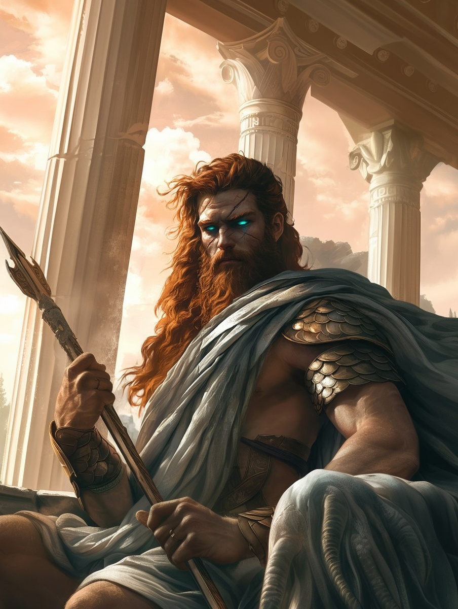 Создано на основе запроса: Ancient Greek male advisor man with partial scales on his face and arms with long red hair and beard. He is in an ancient greek throne room with columns. His eyes have a glowing teal color. Wearing a grey toga and holding a scyptre on one hand. The sky is completely peach colour. --- Автоперевод: Древнегреческий мужчина -советник с частичными весами на лице и руках с длинными рыжими волосами и бородой. Хорошо выглядит? 🤔 https://dzen.ru/id/65c0c65c86e4f837c27b24d7 #ИИ #AI #нейросеть #midjourney #art