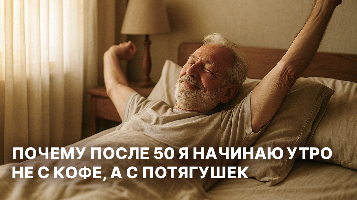 Вы тоже из тех, кто раньше вставал по будильнику, как на пожар? Я долгое время именно так и жил — звонок, резкий подъём, быстро кофе, потом дела, дела, дела… А потом удивлялся, почему с утра всё болит, а в голове туман. Всё изменилось в один случайный день — когда я, ещё лёжа в кровати, потянулся, как кот. Вот честно. Потянулся до хруста, как будто вспоминал, что у меня вообще есть позвоночник. И вдруг — приятное тепло в теле, лёгкость в голове, и даже вставать стало проще. С этого момента я каждое утро начинаю с простого, но важного ритуала: потягушки. После пятидесяти наше тело уже не так радостно прыгает с постели, как в молодости. Суставы могут «ржаветь», мышцы — быть вяленькими, а давление — капризничать. Потягивания — это как тихий запуск двигателя. Без рывков. Вы даёте телу сигнал: «Просыпаемся, дружок, но спокойно». Кровь начинает циркулировать лучше, мозг получает больше кислорода, и вы не просто встали — вы мягко вошли в новый день. Не нужны коврики, тренажёры и фитнес-програ