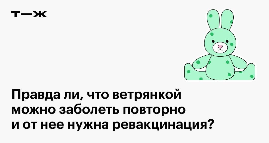 Хорошая новость: второй раз заразиться ветрянкой почти невозможно 🤩 А даже если и заболеть второй раз, при наличии иммунитета ветрянка проходит в легкой форме. Ревакцинироваться от ветряной оспы не нужно: если вы уже привиты двумя дозами, иммунная защита сохраняется до 20 лет, а то и дольше. 👩⚕️ Но если вы никогда не прививались, стоит это сделать: врачи рекомендуют вакцинацию всем подросткам от 13 лет и взрослым, не переболевшим ветрянкой и не вакцинированным в детстве. Какие вакцины для этого подходят и можно ли сделать это по ОМС, объясняет медицинский журналист Светлана Белицкая: https://t-j.ru/z-tg/chicken-pox-revaccination #проверяем_слухи #профилактика