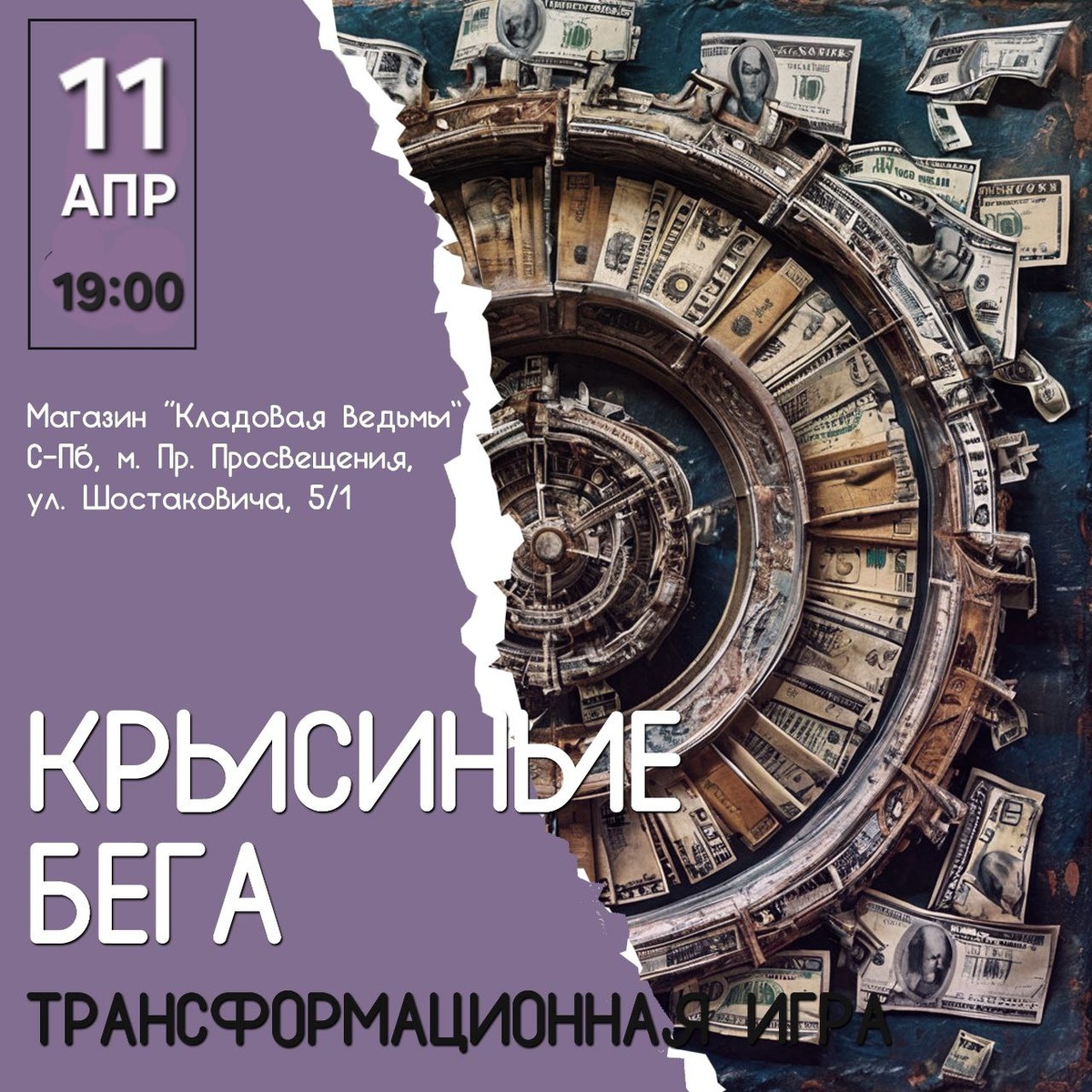 Внимание ‼️ мероприятие с этой субботы переносится на вечер пятницы. И играем, наконец-то, в легендарную игру "Крысиные бега" 🔥 эта та самая игра о финансах, отношениях с деньгами, бизнесе. Очень многие хотели присоединиться из тех, кто уже был на играх. Запись на игру открыта, пишите в личные сообщения, записывайтесь и до встречи в пятницу 😉 @vedmashop_admin Стоимость участия 700 руб.