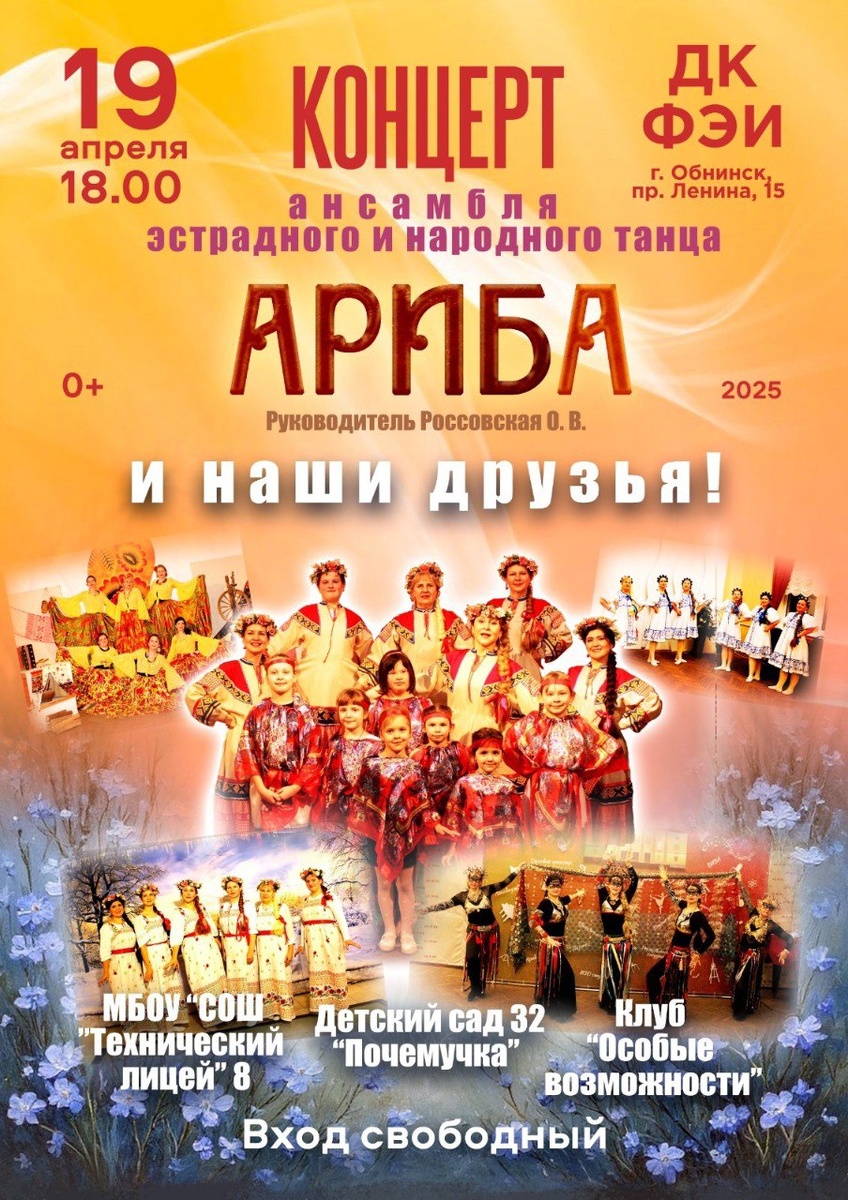 💃🕺19 апреля в 18:00 на сцене ДК ФЭИ в Обнинске засияет ансамбль эстрадного и народного танца «Ариба», коллектив, чье имя давно стало