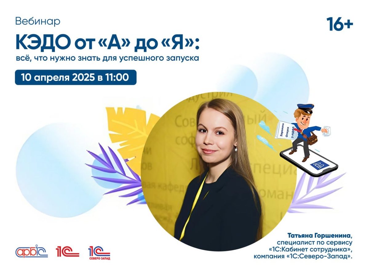 Уже 10 апреля в 11:00 (МСК) состоится онлайн-семинар «КЭДО от А до Я: что нужно знать для успешного запуска», где мы подробно расскажем, как перейти на электронный кадровый документооборот без стресса и ошибок. 📌 На вебинаре вы узнаете: как автоматизировать работу с кадрами через «1С:Кабинет сотрудника»; что нужно для запуска сервиса и как быстро его настроить; как подключить сотрудников и выстроить процессы; какие шаги важно учесть при переходе на КЭДО. 🎙 Спикер — Татьяна Горшенина, специалист по сервису «1С:Кабинет сотрудника», компания «1С:Северо-Запад». 💡 Это отличная возможность разобраться в тонкостях КЭДО и сделать кадровую работу удобнее и современнее. 📲 Не упустите шанс — регистрируйтесь прямо сейчас по ссылке.