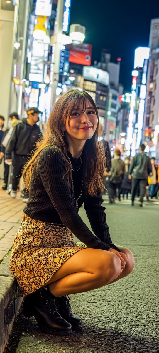 Создано на основе запроса: Japanese 19yo woman, front shot, Nogizaka46, beautiful combed golden long hair, smiling, color contact lenses, professional eye make-up, eyeshadow, eyeliner, eyelash perm, eyelash extensions, eyelash perm, professional makeup artist, perfect eyes, knees, quads, rectus femoris, super mini skirt and holey t-shirt, Osaka buildings and midnight sky, squatting on the edge of the sidewalk, pedestrians, quads, triceps, the blinding light of the sun, shot with a Canon EOS R5, highly, --- Автоперевод: Японская женщина 19 лет, передний снимок, nogizaka46, красивые золотые длинные волосы, улыбающиеся, цветные контактные линзы, профессиональный макияж для глаз, тени для глаз, подводка для глаз, ругая, ура Как тебе картинка? 🤔 https://dzen.ru/id/65c0c65c86e4f837c27b24d7 #ИИ #AI #нейросеть #midjourney #art
