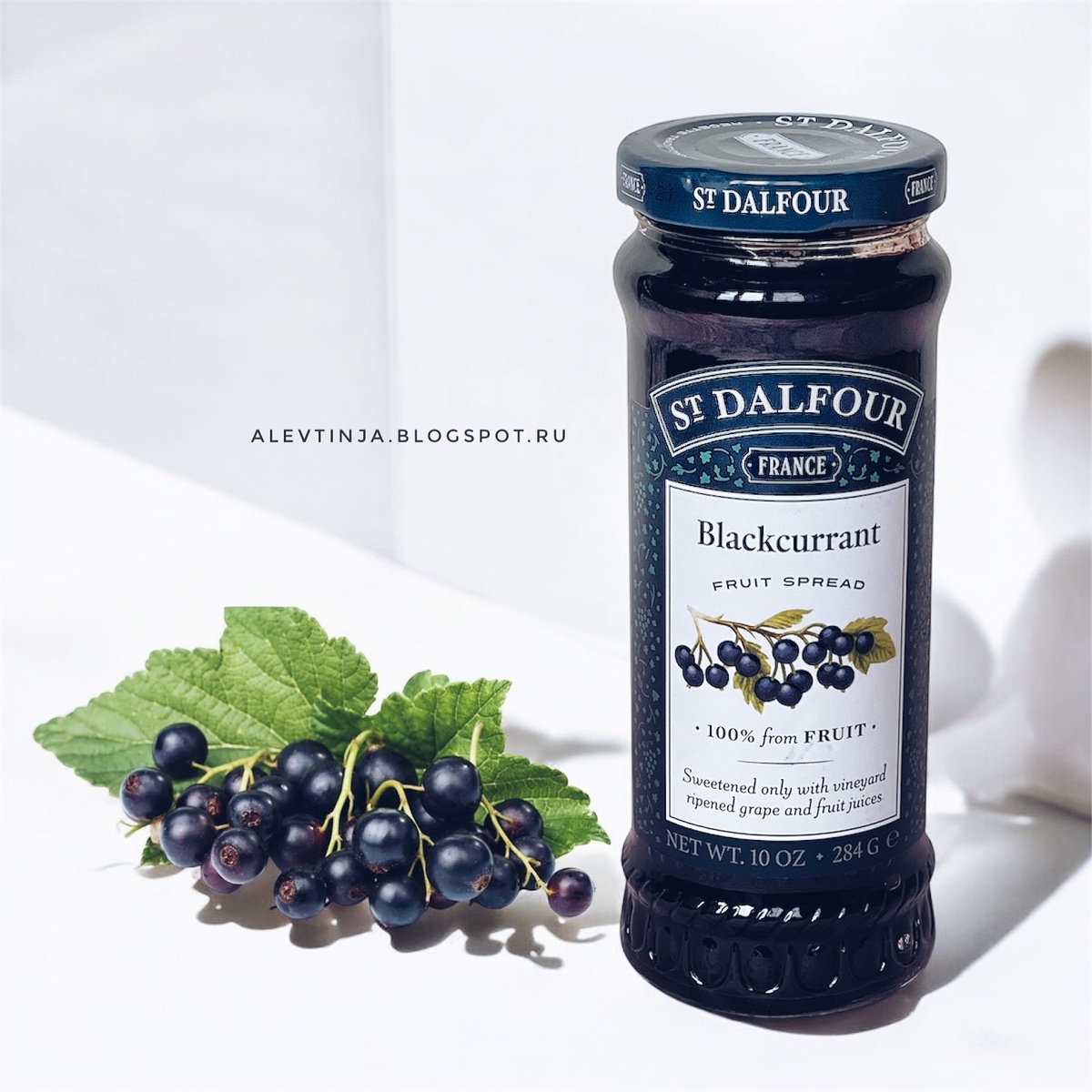 линейке. Чуть не пропустила черносмородиновый. Заказать можно: - на Яндекс маркете на iHerb - St. Dalfour, Черная смородина, Джем из черной смородины Делюкс, 10 унций (284 г) Ну что ж. В двадцатый раз скажу, что джемы St. Dalfour готовятся по старинным французским рецептам из качественных ингредиентов. Главной их фишкой является полнейшее отсутствие сахара. Вместо него производитель использует натуральные фруктовые соки, в данном случае - это виноград и финики. Продукт веганский, проверен на отсутствие ГМО. Состав простой и понятный: черная смородина, концентрированные виноградный и финиковый соки, фруктовый пектин. Баночки этого бренда легко узнаваемы по своей "стройной" форме. Считывается намёк на то, что и мы такими же будем, если исключим сахар из рациона. Джемпредставляет из себя целые ягодки черной смородины в сиропе. Ягодки эти упругие и оче