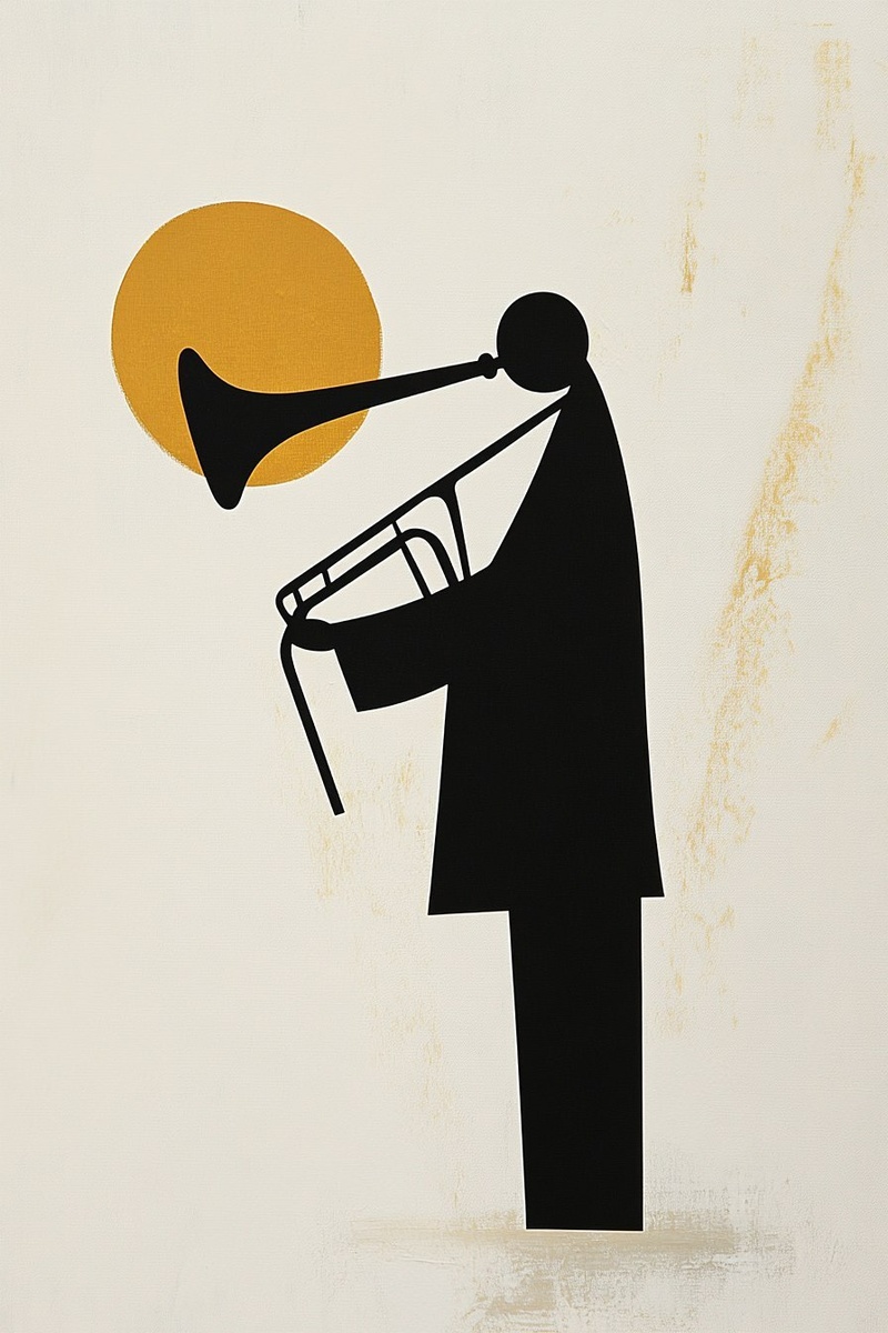 Создано на основе запроса: black man playing trombone, large, full, painting, modern art, vector