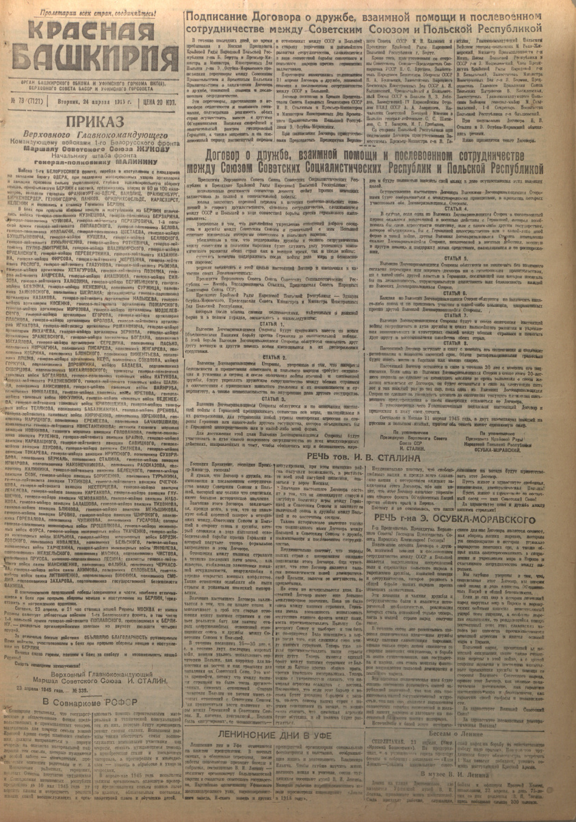 В Дзене стартовал историко-просветительский проект «80 лет назад», приуроченный к юбилею Победы в Великой Отечественной войне. На главной странице dzen.ru в «Новостях» в течение месяца каждый день будут публиковаться подлинные архивные материалы о событиях, происходивших ровно 80 лет назад — день в день. Организаторы проекта сообщают, что в нем приняли участие 17 федеральных и региональных СМИ. Среди них — ТАСС, «Известия», «Комсомольская правда», «Московские новости», «Вечерняя Москва», газета «Правда», «ИноСМИ» и другие. Медиа оцифровали и опубликовали свои архивные газеты военного времени — ранее они хранились только в печатном виде. В разделе «80 лет назад» пользователи Дзена смогут погрузиться в реальные сводки с фронта и узнать о судьбах героев, увидеть, чем жила страна в самый решающий момент в ее истории. Коллектив газеты «Республика Башкортостан» поддержал данный проект, подготовив для публикации ряд архивных материалов газеты-предшественницы «Красная Башкирия» о том, как жила