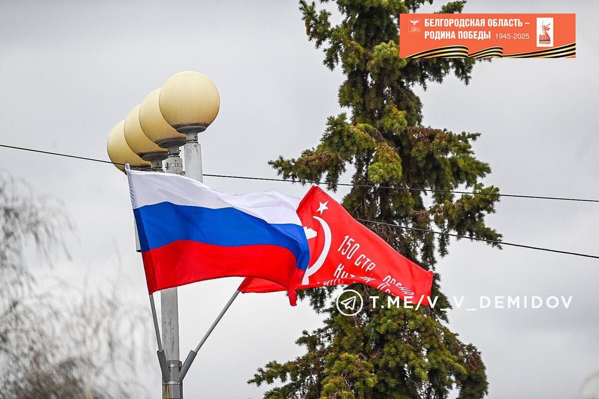 🧧Белгородские улицы украшают к 80-й годовщине Великой Победы Вчера на улице Попова были установлены флаги России и Знамёна Победы. Кроме того, флаговые композиции появятся на мостах, путепроводах и кольцевых развязках, а также на Соборной площади. «Все видовые улицы будут оформлены в единой стилистике», – написал мэр Белгорода Валентин Демидов. Подписаться на нас|Предложить новость