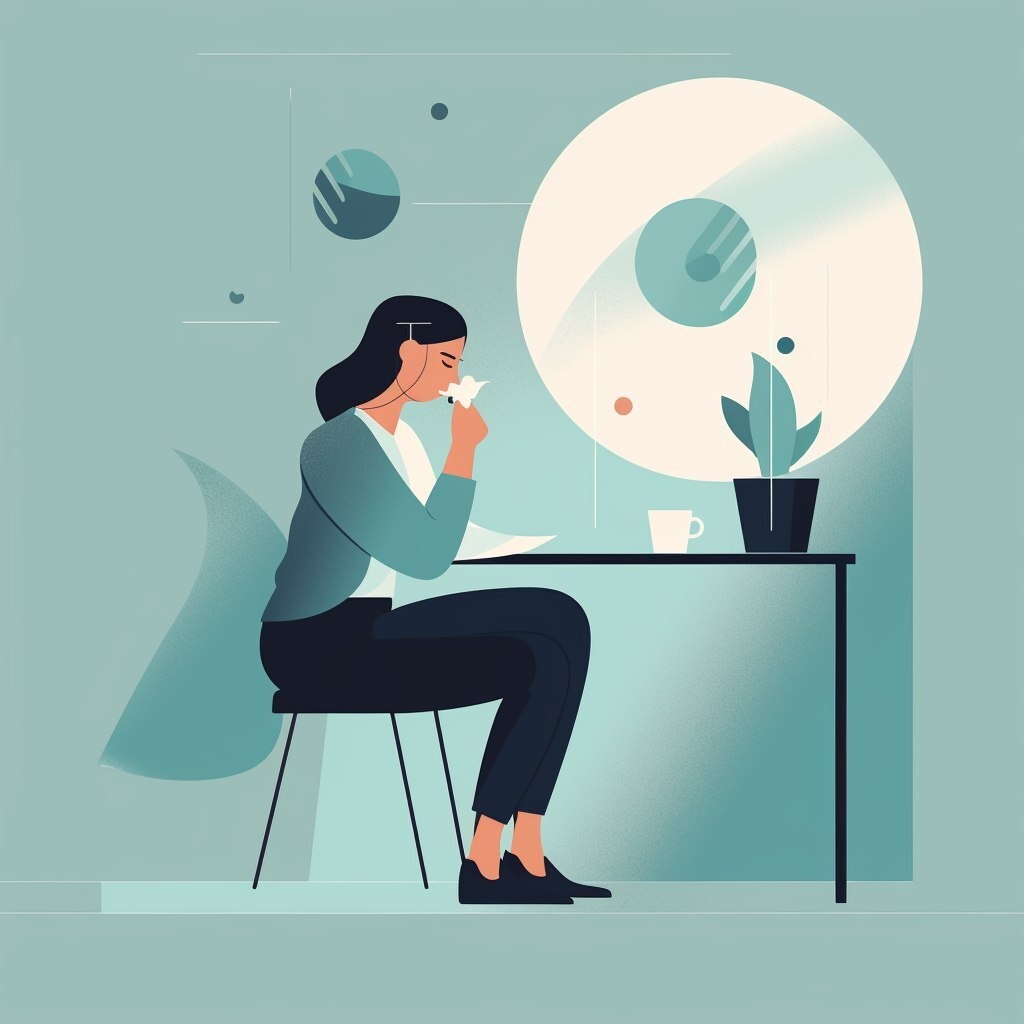 Создано на основе запроса: Seeking Support: A modern, flat art illustration of a person sitting alone in a break room, feeling