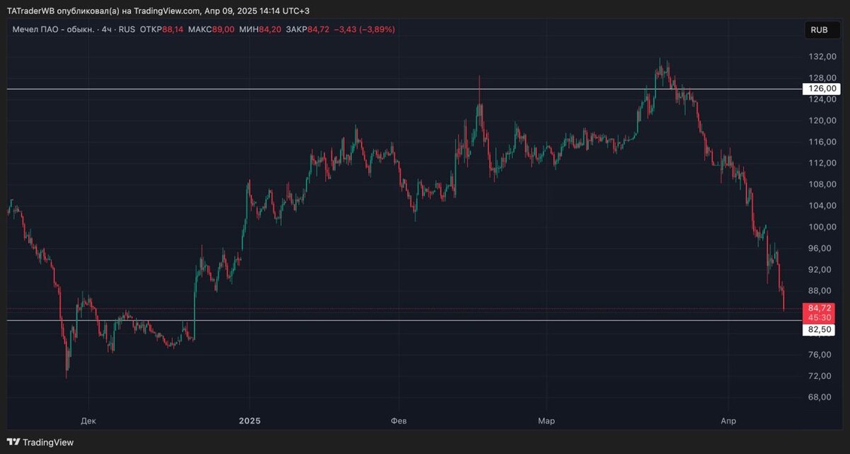 ❗️ Все валится. Однако шортить сейчас никак не стану. Впереди есть сильные поддержки по инструментам, от которых может пойти фиксация шортовых позиций. Поэтому от сильных уровней поддержки буду присматривать интрадей лонг, на отскок с целью 1-2%. Один из кандидатов, за которым наблюдаю: $MTLR 🚀 Планирую присмотреть лонг на отскок 82,5. (Вход могу взять в диапазоне 82,5-82,8) Стоп поставлю 0,7%. Тейк +1,4-2,1%. При достижении +0,7% поставлю стоп в без убыток. Стоп считаю от цены уровня, то есть от 82,5. Я НЕ ЗНАЮ ЧТО БУДЕТ ДАЛЬШЕ! НЕ призыв к действию! Больше идей в Базе. ВНИМАНИЕ!!! Это условия торговли, то есть ЕСЛИ Мечел придет к уровню, зайду. НЕ придет, НЕ зайду!!! Могут выйти новости, это остается доп риском и это НЕВОЗМОЖНО спрогнозировать! 🤝