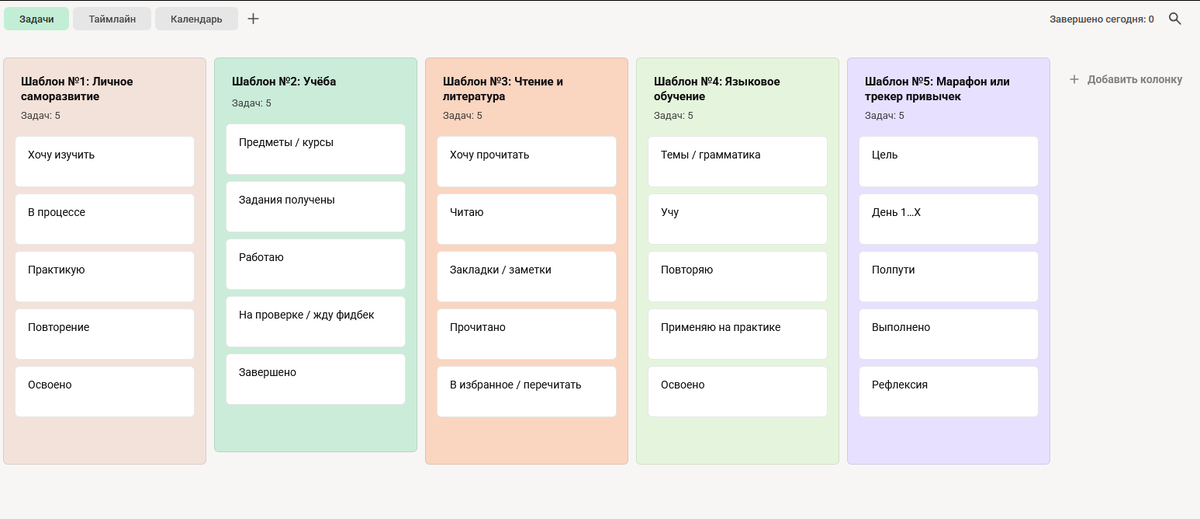 Шаблоны канбан-досок в образовании и саморазвитии