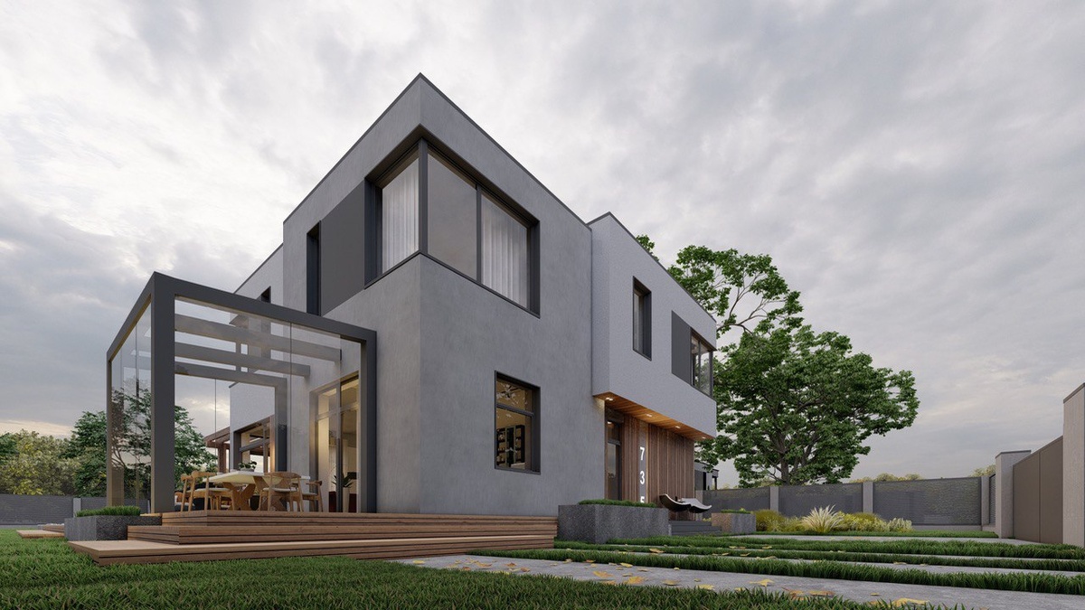 Проект дома в стиле хайтек в два этажа - 200 кв.м