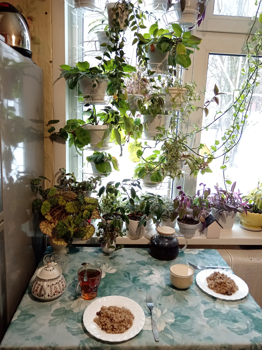 Легла очень поздно, уже ближе к половине первого ночи. Пока все объявления о продаже цветов разместила в специализированной группе. А время идёт... Всю ночь проливной дождь хлестал своими струями-ремнями по металлическому карнизу, периодически выдёргивая меня из глубокого омута сна. Ближе к утру к завываниям ветра уже не так прислушивалась. Только старые тополя хрустели своими старыми сучьями-руками на всю округу. 6:55. Прошелестел мой любимый лесной водопад. Встрепенулась как лесная птичка. Пора-пора. Смутное чувство предстоящего отдыха ждёт меня только уже вечером. -4° С температура воздуха на улице. Насыпала купленных подсолнечных семечек в кормушку для птах. Пока чайник завывал как ночной ветер сегодняшней ночью, приготовила гречку с тушенкой. Позволила себе кофе со сливками, а то не проснусь весь день. Для сына налила крепкий чай. Кофе даже со сливками в его возрасте не совсем полезно. 7:50. По колено воды. Хорошо, что запрыгнула в резиновые сапоги. По другому не пройти. Маковки