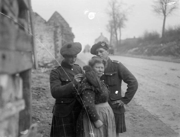 Шотландские пехотинцы из полка Сифортских Хайлендеров и французская женщина с попугаем, Сен Катерин, Аррас, 24 января 1918 года