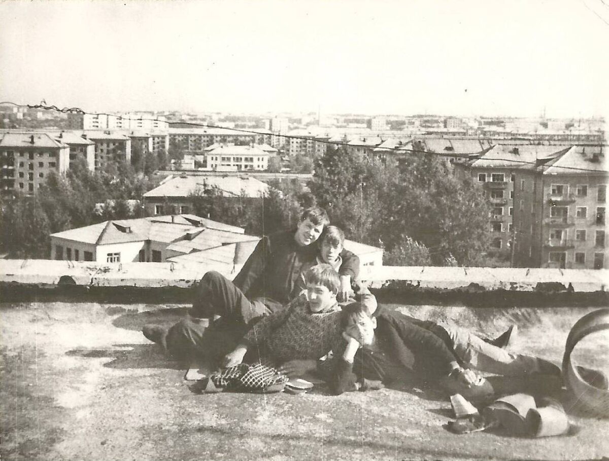 Свердловск. Вид на улицы Стахановскую и Избирателей с крыши строящейся АТС-22 Фото 1971 год. Сентябрь 1971 г., Свердловск, Уралмаш (Ордж. р-н), ул. Индустрии, 56а. На снимке - практикант мех.отделения (гр. М-233) Свердловского строительного техникума Минтяжстроя СССР Виктор Ведерников (уже подозревавший о том, что в следующем веке получит оперативный псевдоним "Ушелец") и его со товарищи. Из источника: Трое из четверых парней, что на фото, стали линейными механиками на стройках города и области, а четвёртый много лет (до самой кончины СССР) занимался разработкой и внедрением средств малой механизации в стройтрестах системы Главсредуралстроя (Минтяжстрой СССР), награжден медалью ВДНХ. Источник: Личный архив В.Г. Ведерникова Адрес точки съемки: Ул. Индустрии, 56А. #Екатеринбург #Свердловск #СтарыйЕкатеринбург #СтарыеФотоЕкатеринбург #ЕКБ #АрхивныеФото #Ностальгия Мы ценим ваши реакции 👍, а Ваши комментарии вызывают неописуемое восхищение.👍 Мы в ВКонтакте ™️ Мы в Telegram ✈️ по