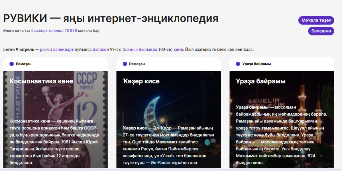 Башкирский раздел «РУВИКИ» вошёл в тройку самых популярных