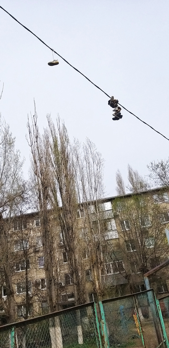 Собачники меня поймут. Когда выгуливаешь утром питомца, можно увидеть много интересного. Например, кроссовки на проводах. Но самое интересное не это, а то что буквально вечером мне попадается статья именно про такие кроссовки. Как будто кто-то прочитал мои мысли. Вот и не верь после этого в матрицу. Быстренько все нашли и мне расшифровали, видимо, чтобы сама лишнего не напридумывала. В общем, такие кроссовки или ботинки на проводах оказываются не просто так. Говорят, что это целое международное движение, называемое "шуфити" от shoe+graffiti, т.е. "обувное граффити". А я глупая чуть не подумала, что это ребята балуются. Так нет же, это международный масштаб. И висит себе такая обувная красота не только в нашем районе, но и в США, Канаде, Латинской Америке, Франции и т.д. Приобщает молодежь к "прекрасному". Оказывается, так же можно украсить еще фонарные столбы и деревья. Я у нас еще такого не нашла, но буду искать. Еще не все места мы прошли с Ричи в нашем городе. Так и представляю, и