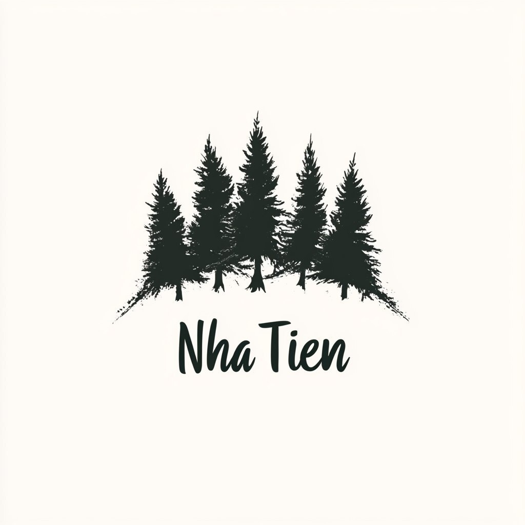 Создано на основе запроса: A logo design featuring the name "Nha Tien" in an elegant font, surrounded by silhouettes of pine trees