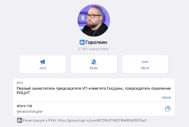 В Telegram заработала маркировка каналов, зарегистрированных в реестре Роскомнадзора. Для получения отметки «А+» нужно воспользоваться ботом Trustchannelbot. После знак появится слева от названия канала, уточнил первый зампредседателя ИТ-комитета Госдумы Антон Горелкин.