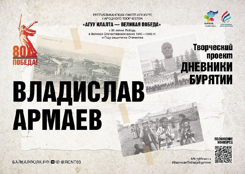Творческий проект #ДневникиБурятии проходит в рамках Республиканского смотра-конкурса народного творчества «Агуу Илалта – Великая Победа», посвященного 80-летию Победы в Великой Отечественной войне 1941–1945 гг. и Году защитника Отечества.