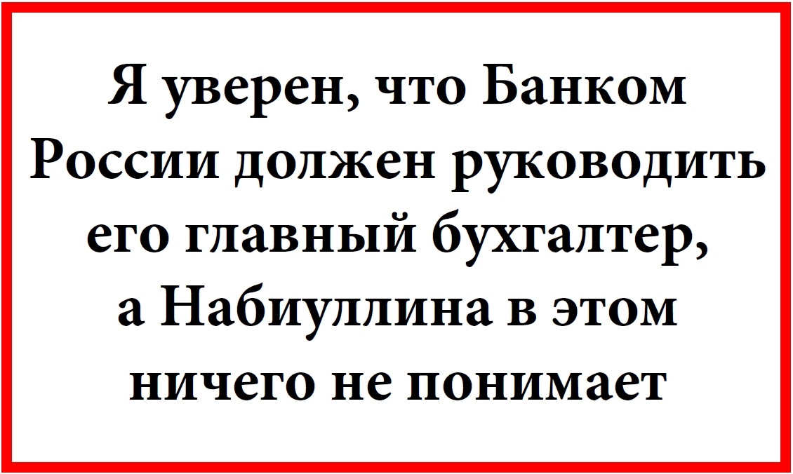 Я уверен, что Банком России должен руководить его главный бухгалтер, а Набиуллина в этом ничего не понимает