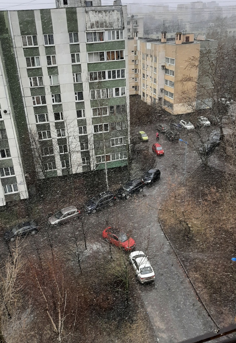 Вышла утром из дома, а на улице меленький такой, но снежок с неба сыпется.