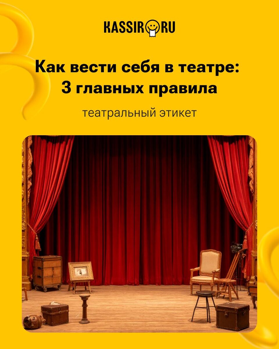 👺 Театр начинается с вешалки. А хороший спектакль — с правильного настроя зрителей! Каждый, кто часто бывает в театре, знает: иногда поведение соседей по залу может испортить впечатление даже от самой гениальной постановки. Мы подготовили полезные карточки о базовом театральном этикете. Эти простые, но важные правила помогут: • Не отвлекать актёров и других зрителей • По-настоящему погрузиться в происходящее на сцене • Получить максимум удовольствия от спектакля