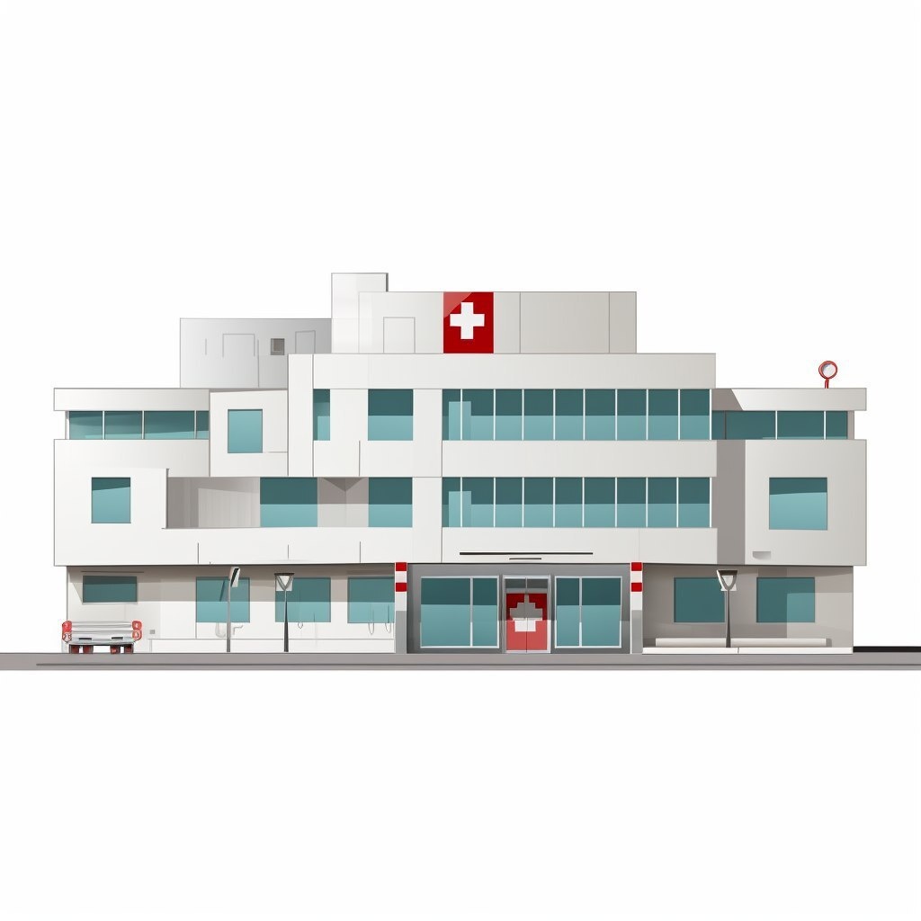 Автоперевод: Реалистичное современное здание больницы, которое просматривает спереди или под небольшим углом.