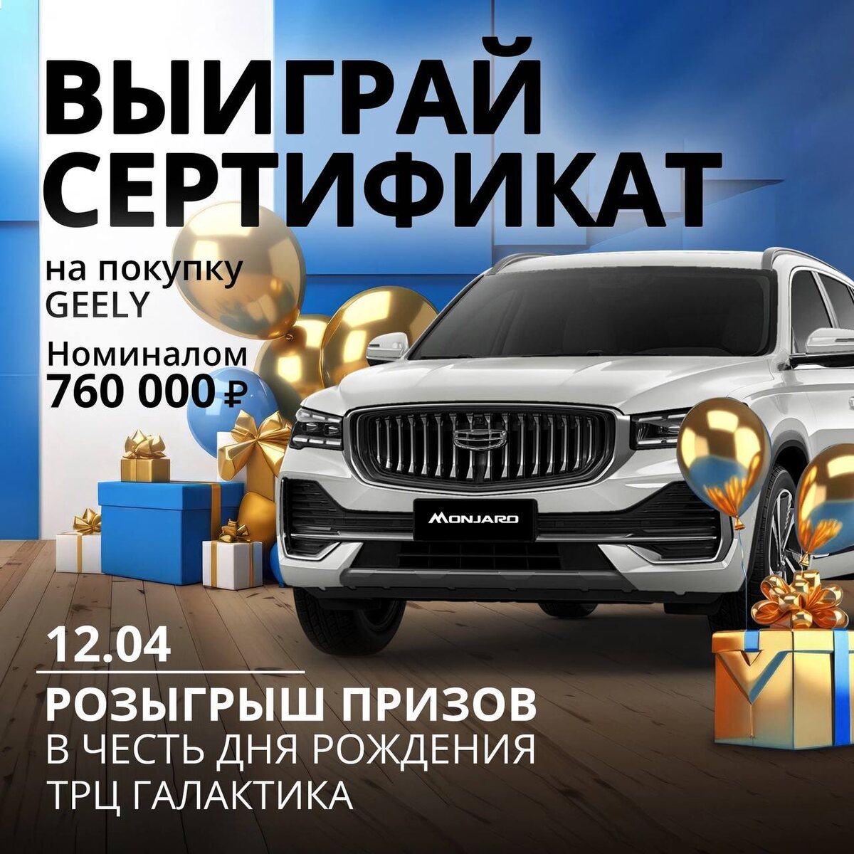 12 апреля ТРЦ Галактика отмечает свой день Рождения , и GEELY с радостью присоединяется к этому празднику, чтобы сделать его незабываемым. Что вас ждет? Грандиозный розыгрыш призов от бренда GEELY и партеров мероприятия! ❗️Главный приз GEELY— это шанс выиграть СЕРТИФИКАТ на покупку нового автомобиля GEELY номиналом 760 000 ₽! Представьте себе новый стильный автомобиль, и он может стать вашим по максимально привлекательным условиям! Также, специально для Вас: ✅Выставка автомобилей GEELY; ✅ Бесплатный ТЕСТ-ДРАЙВ прямо с территории ТРЦ; ✅ Профессиональная консультация менеджеров; ✅ DJ, ведущий, выступления артистов и мастер-классы для детей. Время: 12:00 - 15:00 Место: ТРЦ "Галактика" Не упустите шанс познакомиться с автомобилями GEELY лично и выиграть главный приз! Забронируйте свою поездку на GEELY прямо сейчас! Записывайтесь на тест-драйв по ссылке👉 https://vk.cc/cfb2UJ Ждем вас в ТРЦ Галактика в 12:00! #Geely #ДеньРожденияГалактика #ТестДрайв #НовыйАвтомобиль #Розыгрыш