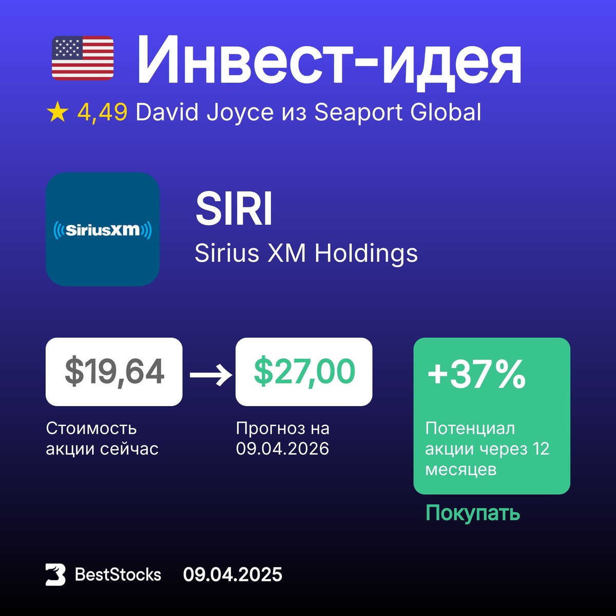 πΊπΈ ΠΠ½Π²Π΅ΡΡ-ΠΈΠ΄Π΅Ρ ΠΏΠΎ Π°ΠΊΡΠΈΠΈ Sirius XM Holdings Π’ΠΈΠΊΠ΅Ρ: SIRI ΠΡΠΎΠ³Π½ΠΎΠ·Π½Π°Ρ ΡΠ΅Π½Π°: $27 (+37%) Π Π΅ΠΊΠΎΠΌΠ΅Π½Π΄Π°ΡΠΈΡ: ΠΠΎΠΊΡΠΏΠ°ΡΡ InvestRank Π°ΠΊΡΠΈΠΈ: 6 ΠΈΠ· 10 ΠΡΠΎΠ³Π½ΠΎΠ· ΡΠ΄Π΅Π»Π°Π½: 09.04.2025 ΠΡΠΎΠ³Π½ΠΎΠ· Π΄ΠΎ: 09.04.2026 ΠΠ½Π²Π΅ΡΡ-ΠΊΠΎΠΌΠΏΠ°Π½ΠΈΡ: Seaport Global ΠΠ½Π°Π»ΠΈΡΠΈΠΊ: David Joyce ΠΡΡ ΡΠ΅ΠΊΠΎΠΌΠ΅Π½Π΄Π°ΡΠΈΠΈ Π½Π° ΡΠ΅Π³ΠΎΠ΄Π½Ρ β β’β’β’β’β’ π₯ ΠΠΎΠ»ΡΡΠ°ΠΉΡΠ΅ Π±ΠΎΠ»Π΅Π΅ 400 ΡΠ²Π΅ΠΆΠΈΡ