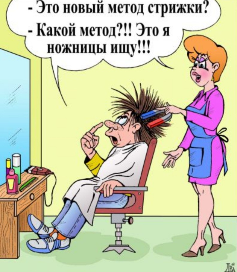 -- -- -- -- -- -- В маленьком городке, где новости разносились быстрее ветра, стояла парикмахерская «У Виктора». Вывеска криво висела, но это никого не смущало — все знали: Виктор стрижёт так, что хоть на выставку. Правда, с одним «но»: он обожал рассказывать анекдоты, которые были настолько старыми, что даже бабушка его ассистентки Зины вздрагивала от слов «Вовочка и учительница…». -- -- Однажды в салон зашёл новый клиент — Игорь, менеджер из соседнего офиса, помешанный на идеальной укладке. Волосы его блестели, как лакированный паркет. — Сделайте, как в журнале! — ткнул он в глянцевую страницу, где модель щеголяла стилем «искусственный беспорядок». — Без проблем! — воскликнул Виктор, доставая ножницы размером с садовый секатор. — А вы знаете, чем парикмахер отличается от философа? Философ думает, что жизнь — боль, а парикмахер её подстригает! -- -- Зина, потянувшись за краской, случайно перепутала баночки. Вместо «Платиновый блонд» в руках её замерцал