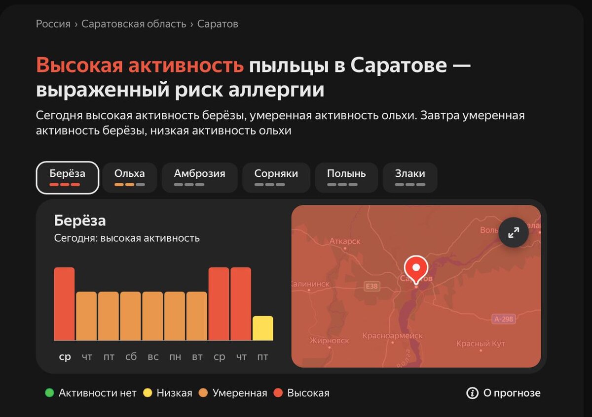❗️ Индикатор пыльцы в Саратове бьёт тревогу