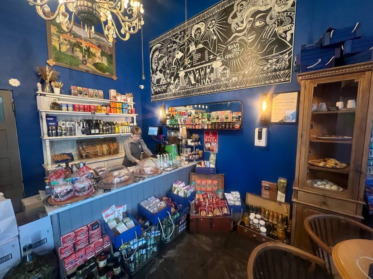Мы, конечно, до греческого Афона не доедем на Пасху, а вот до пекарни Molon Lave на Тишинке дойти вполне в состоянии. В местной лавке вовсю готовятся к празднику, отмечать его будут по-гречески широко. В центре стола — сладкий пасхальный хлеб «Цуреки», песочное печенье с апельсином «Кулуракья» и уникальный Kagor Meteora, освященный монахами со Святой горы Афон. Так что, хоть как-то тоже к Афону приобщимся. Из лавки сложно уйти без Greece Products — поэтому взяли заодно оливки, томаты, масло. По ценам — здесь приятнее, чем в зеленых магазинах. И ощущение, что возвращаешься не из лавки, а из Греции. Пусть это и обманчиво, но с нынешними +24 на улице во что только не поверишь