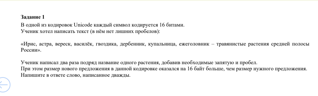 В эти дни проходили тренировки с участием детей на ОГЭ по информатике. Вашему вниманию предлагаются те задания, которые были на них. Есть некоторые изменения, но о них вы увидите уже в самих задачах Итак задание 1 - обычное: Решаем: Задача 2: усложнённое Решаем: 10011 01001 10011 10001 01001 01101 01110 И М Т Р И М Н Ответ: ИМ Задание 3 тоже немного усложнённое, на три выражения: Ответ тут 7 Задание 4, тоже непростое, а на 6 столбцов: Граф выходит примерно такой Маршрут: АBCF - длина кратчайшего 4+2+9=15. Ответ 15 Задача 5 обычная: Решаем: 4 *3 =12 12-1= 11 11-1 =10 10*3 =30 30-1 =29 Команды: 12212 Ответ: 12212 Задание 6 - задание с параметром!: В таблице пропускаем все А от -11 до - 5 и получаем одну ЛОЖЬ При А=2 получаем две лжи И, наконец при А= 4 получаем три ЛОЖЬ Ответ А минимальное = 4 Задание 7 обычное: Я даже ответ писать не буду, не сможете его сделать, то и проваливайте всю информатику. Задание 8: Ответ будет 80 Задание 9 - впервые вижу такую